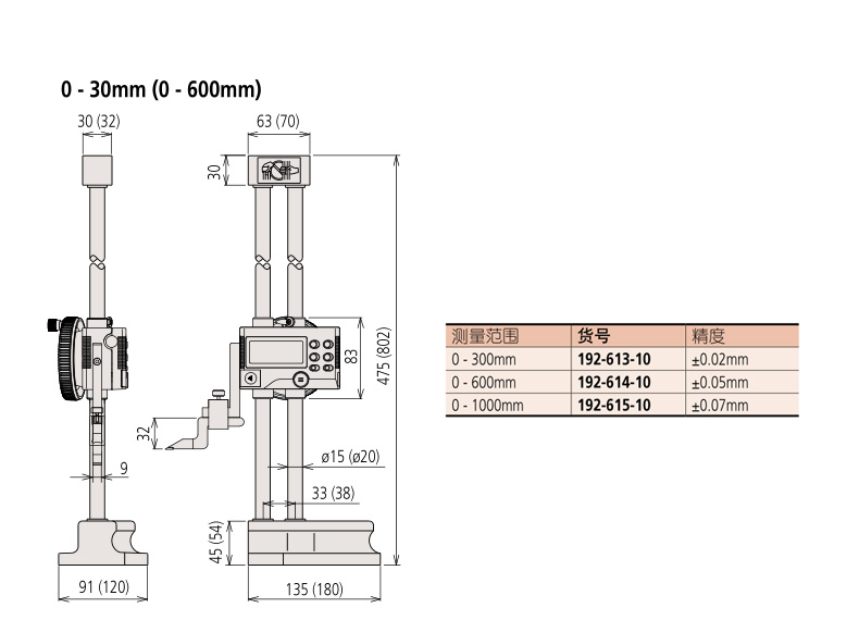 產(chǎn)品型號(hào):192系列雙柱數(shù)顯高度尺