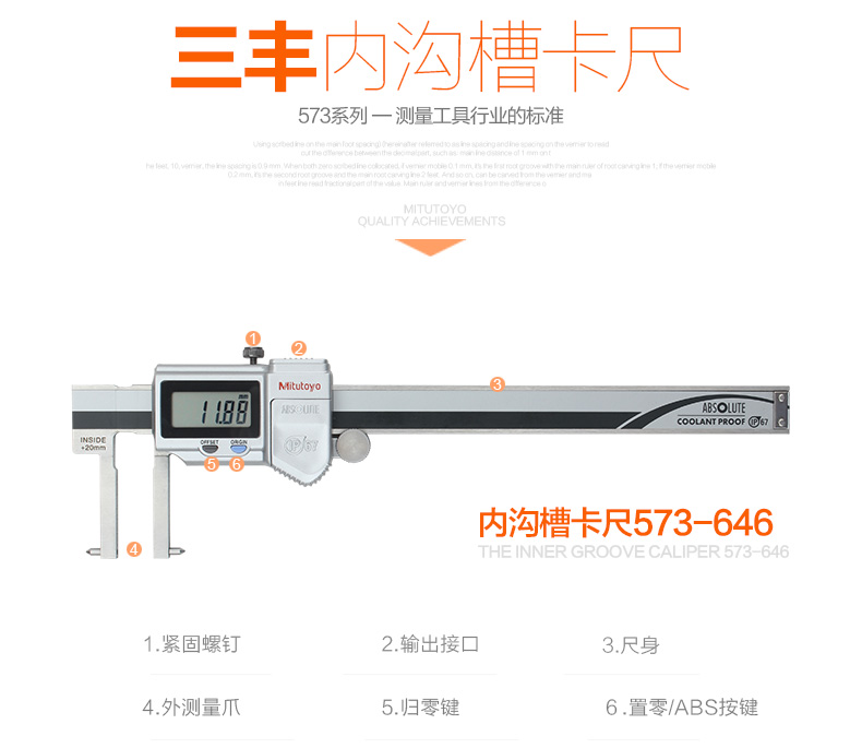 產(chǎn)品名稱:日本三豐Mitutoyo 573系列內(nèi)溝槽數(shù)顯游標(biāo)卡尺