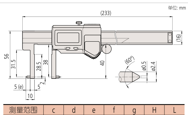 產(chǎn)品型號:573系列內(nèi)溝槽數(shù)顯游標(biāo)卡尺