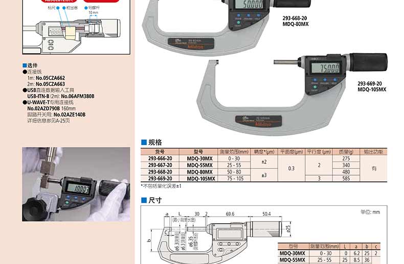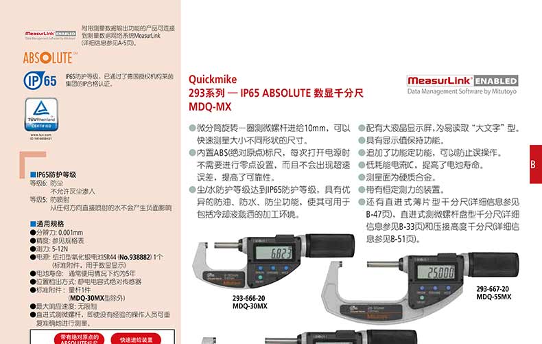 產(chǎn)品名稱:日本三豐(mitutoyo)Quickmike293 系列 IP65 ABSOLUTE 數(shù)顯千分尺MDQ-MX