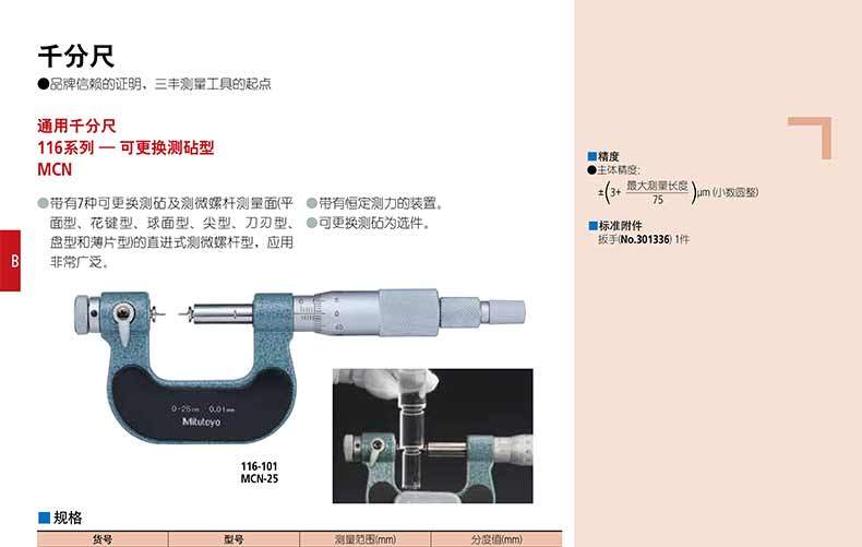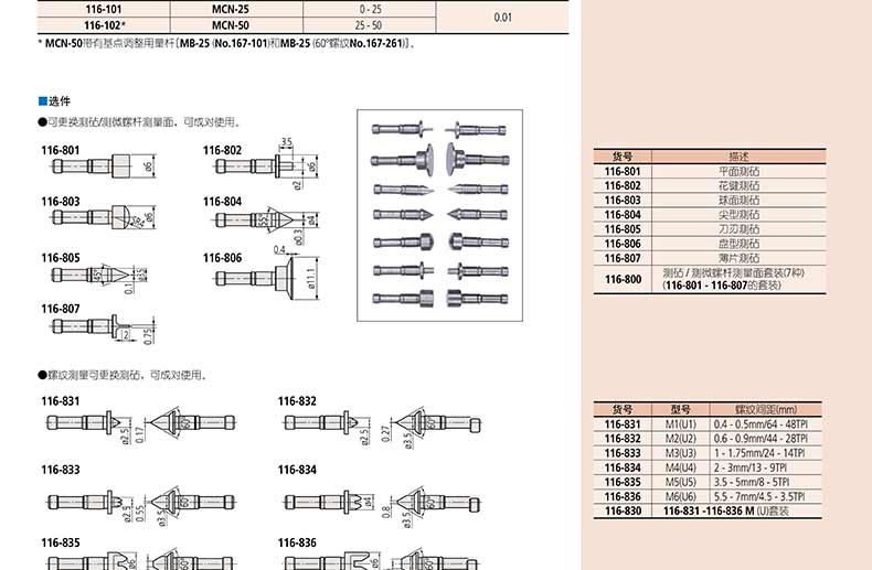 產(chǎn)品名稱:日本三豐(mitutoyo)通用千分尺116 系列 可更換測(cè)砧型MCN