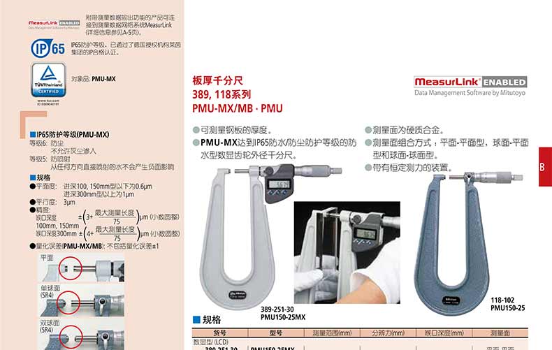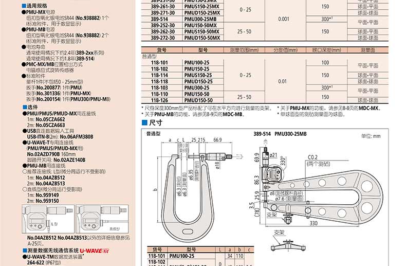 產(chǎn)品名稱:日本三豐(mitutoyo)板厚千分尺389, 118 系列PMU-MX MB · PMU