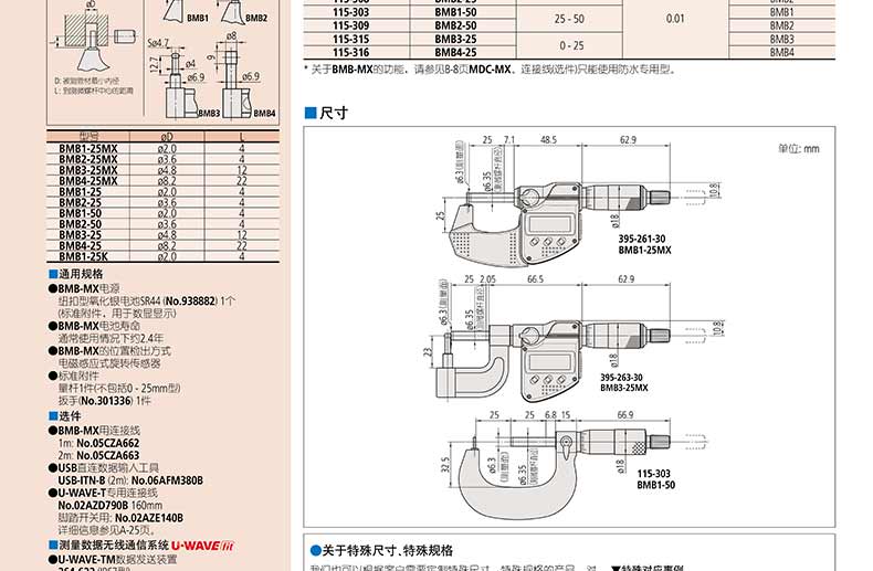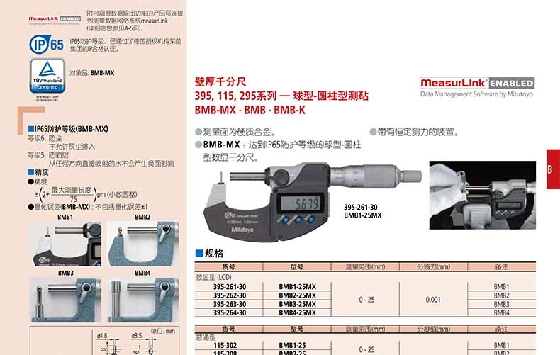 產(chǎn)品名稱(chēng):日本三豐(mitutoyo)壁厚千分尺395, 115, 295 系列 — 球型 - 圓柱型測(cè)砧