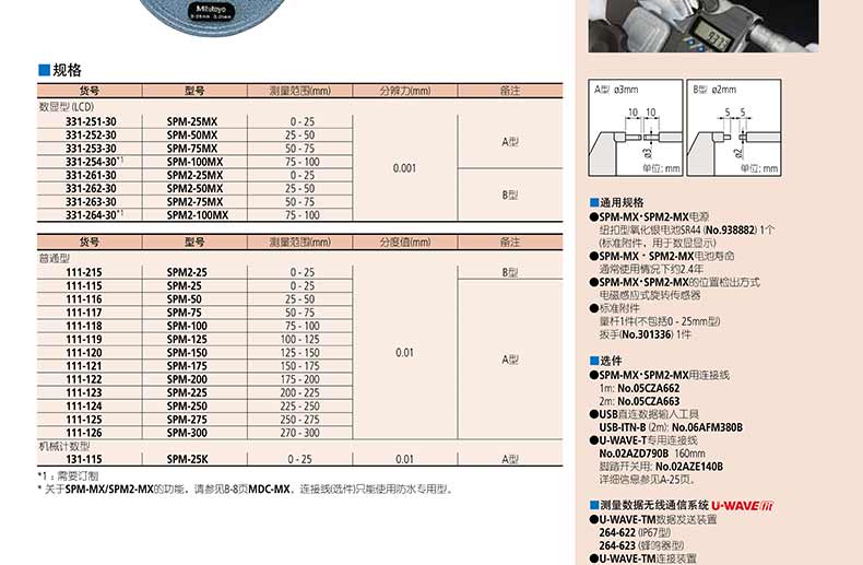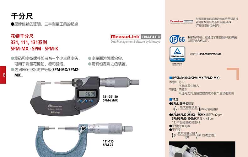 產(chǎn)品名稱:日本三豐(mitutoyo)花鍵千分尺331, 111, 131 系列SPM-MX · SPM · SPM-K