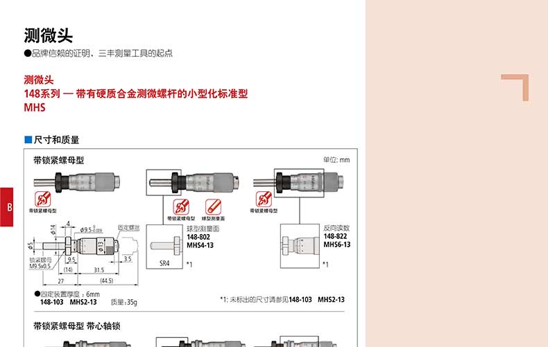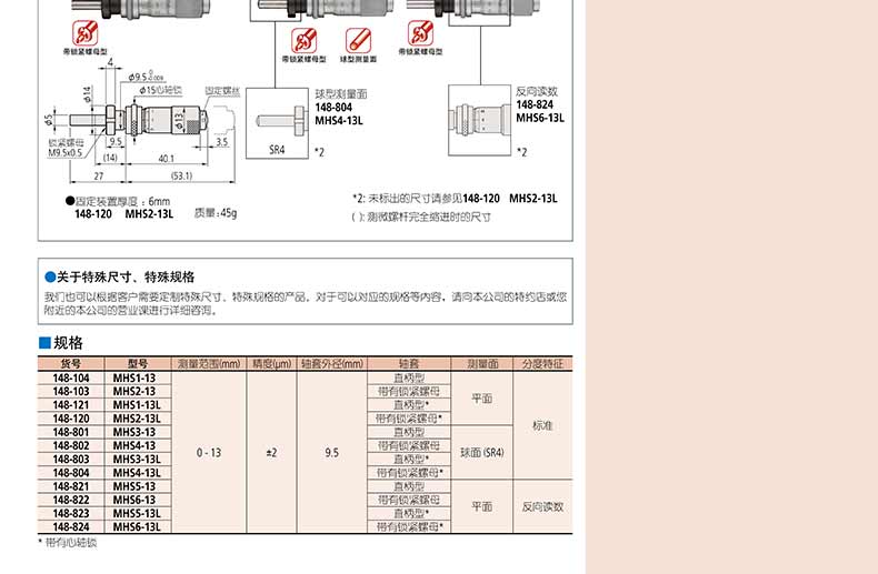 產(chǎn)品名稱(chēng):日本三豐(mitutoyo)測(cè)微頭148 系列 — 帶有硬質(zhì)合金測(cè)微螺桿的小型化標(biāo)準(zhǔn)型