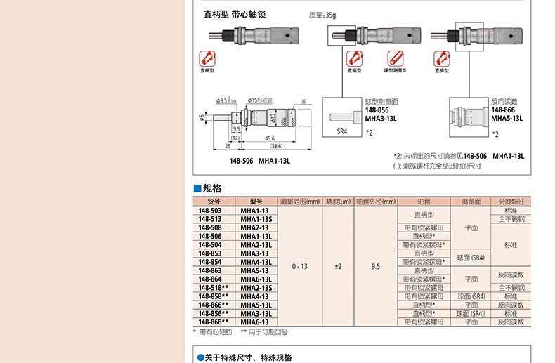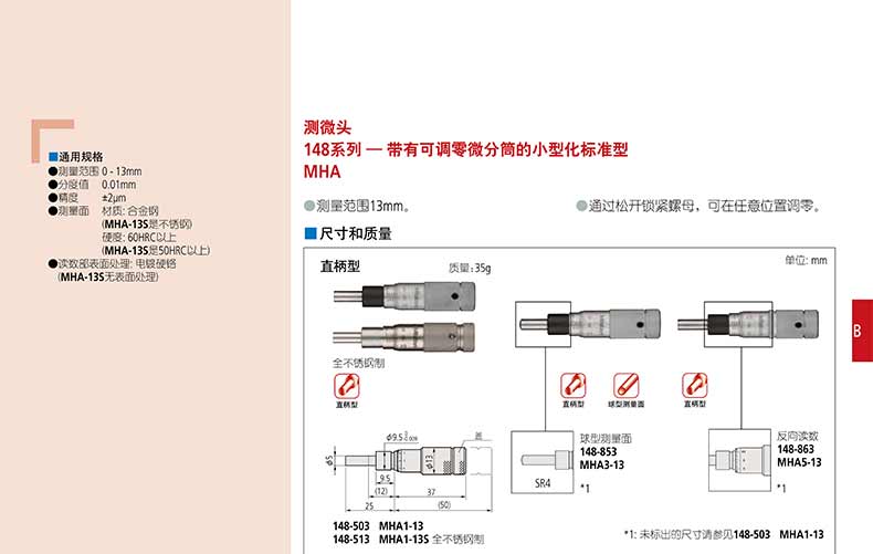 產(chǎn)品名稱:日本三豐(mitutoyo)測微頭148 系列 — 帶有可調(diào)零微分筒的小型化標(biāo)準(zhǔn)型