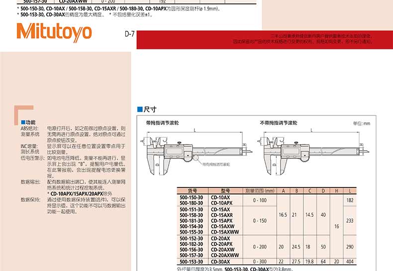 產(chǎn)品名稱:日本三豐(mitutoyo)ABSOLUTE 數(shù)顯卡尺500 系列