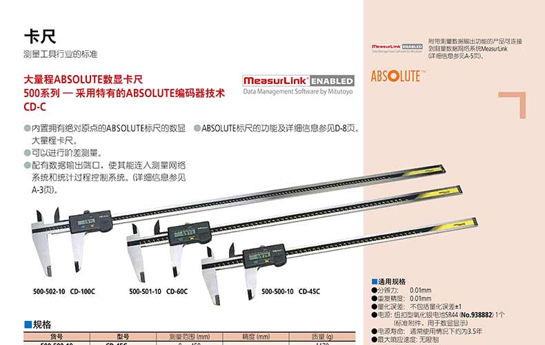 產(chǎn)品名稱:日本三豐(mitutoyo)500系列大量程 ABSOLUTE數(shù)顯卡尺