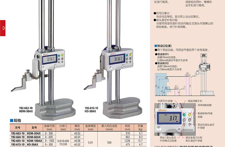 產(chǎn)品名稱:日本三豐(mitutoyo)數(shù)顯高度卡尺192 系列帶有 SPC 數(shù)據(jù)輸出的多功能型