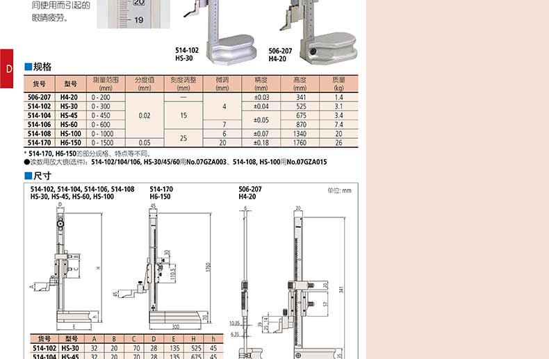 產(chǎn)品名稱(chēng):日本三豐(mitutoyo)機(jī)械游標(biāo)高度卡尺514, 506 系列帶有可調(diào)主標(biāo)尺
